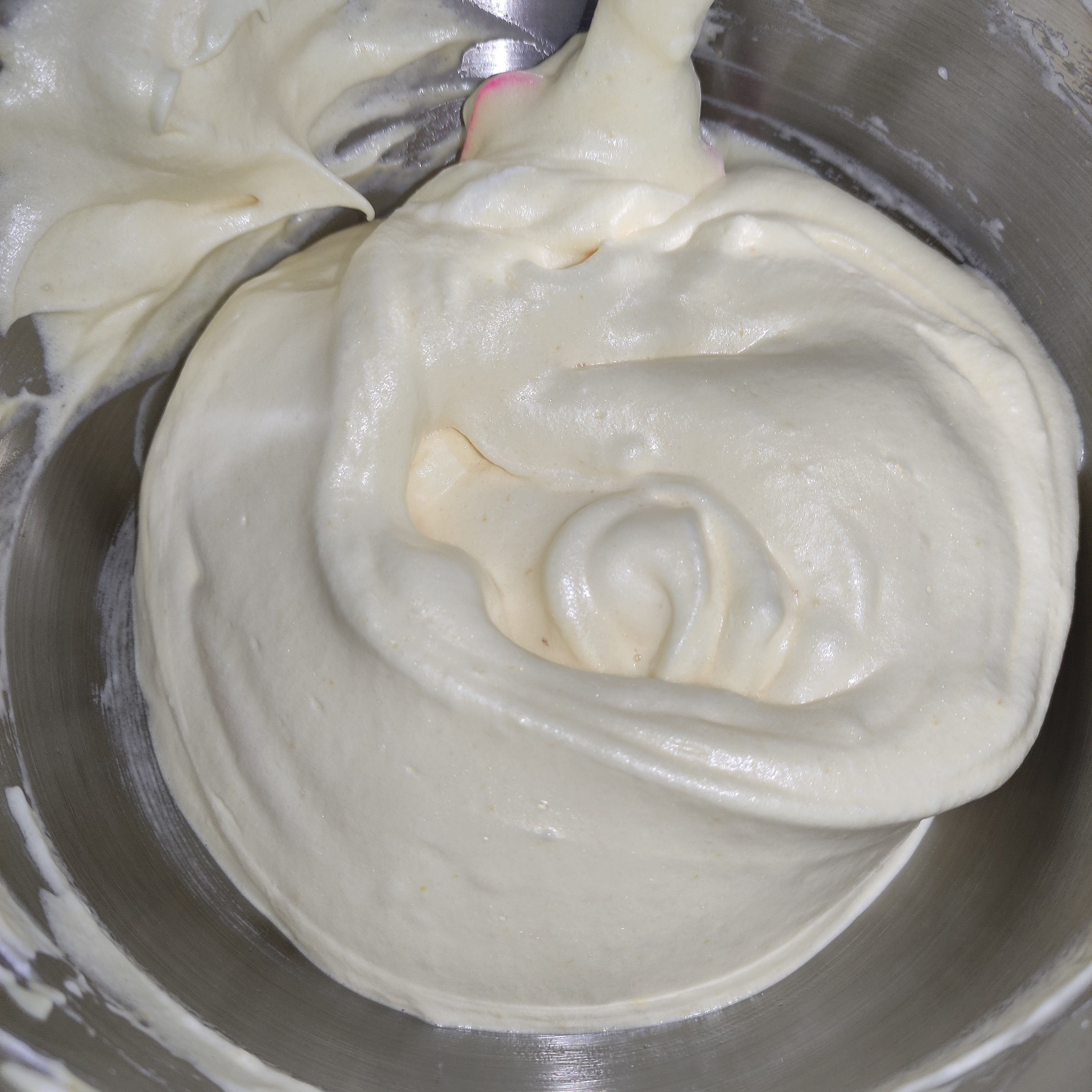 Y por último, montamos la nata. Cuando esté semimontada añadimos el azúcar y seguimos batiendo hasta que la consistencia sea muy firme. Recordad que para ello tanto nata como bol deben estar muy, muy fríos. Con las claras ocurre al revés: cuanto más frías, peor montarán. Siempre los huevos a temperatura ambiente para la repostería.